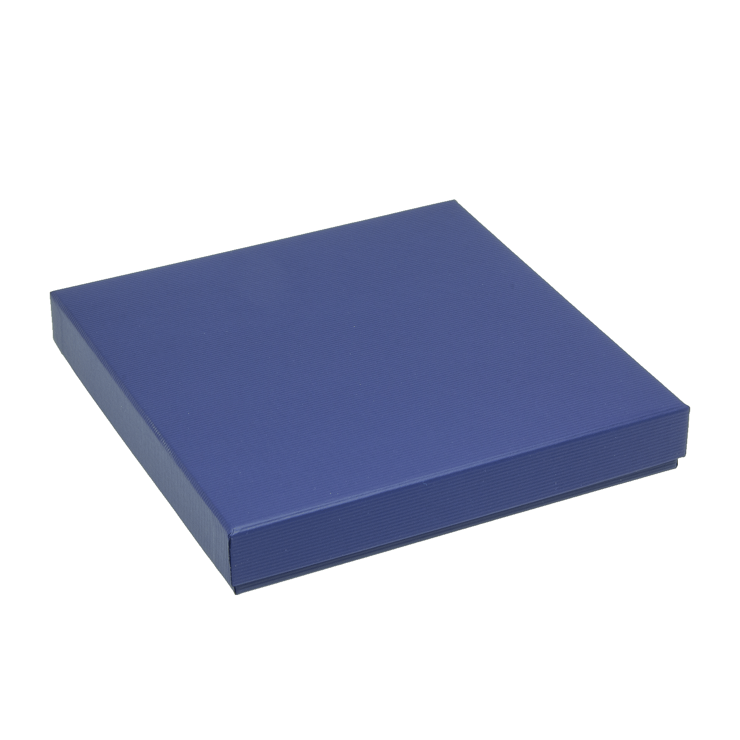 The cardboard jewellery box from the series 0230 PLAIN in the external colour blue is the ideal jewellery packaging for necklaces and chokers. With its dimensions of 165 x 165 x 25 mm, it offers ample space and protection for your valuable jewellery pieces. The interior of the box is lined with flocked foam in the colours white and black to prevent scratches and damage. The box can be customised according to your wishes with a hot foil embossing, either on the outside or inside. Gold, silver, black, or almost any desired colour are available for this. There is also the option for multicoloured embossing at an additional charge.