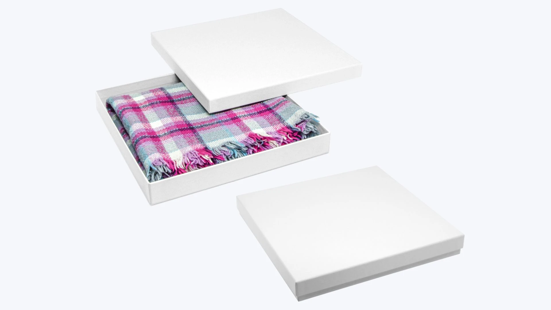 The standard internal dimensions of 240 × 240 × 30 mm are ideal for most scarves and shawls. For larger or bulkier products, we are happy to manufacture custom sizes as required.
