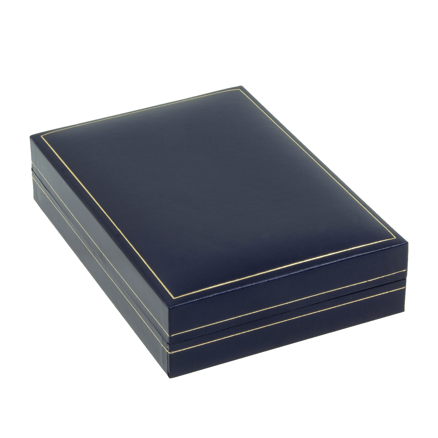 The high-quality jewellery cases from the 5516 MANHATTAN series in the exterior colour blue are the ideal Packaging solution for necklaces and collars. With dimensions of 105 x 144 x 28 mm, they offer ample space for your valuable pieces of jewellery. Inside, the cases impress with jewellery-related inserts in white and blue, perfectly showcasing your necklaces. The option of hot foil stamping on the inside gives the high-quality jewellery cases a customised touch. Choose between gold, silver, black, or almost any desired colour to make your Packaging even more personal. Multicoloured stamping is also available at an additional cost. For jeweller retailers, goldsmiths, and Jewellery brands, the high-quality jewellery cases from the 5516 MANHATTAN series are the optimal choice to appealingly present your high-quality necklaces and provide your customers with an exclusive shopping experience.