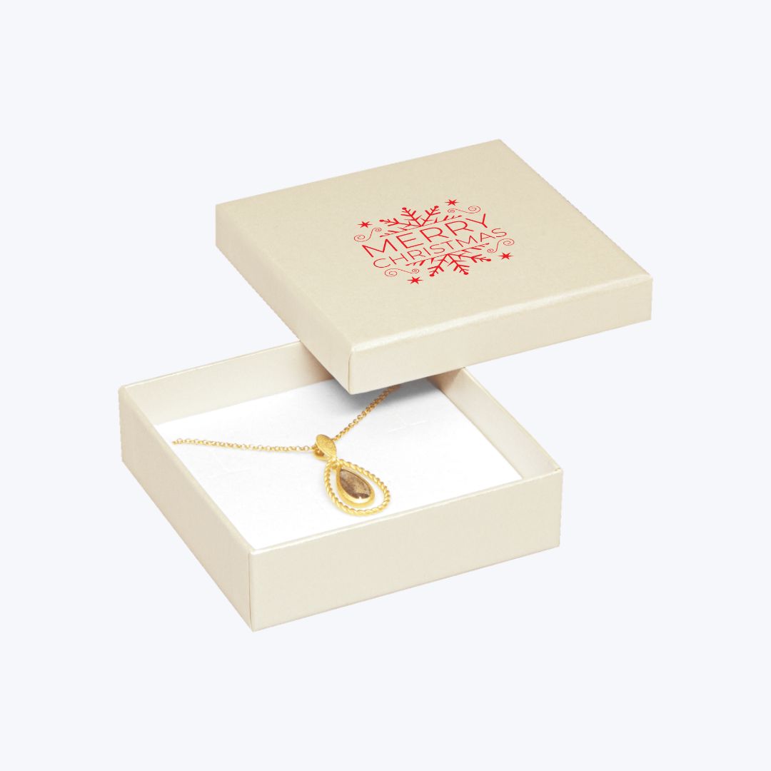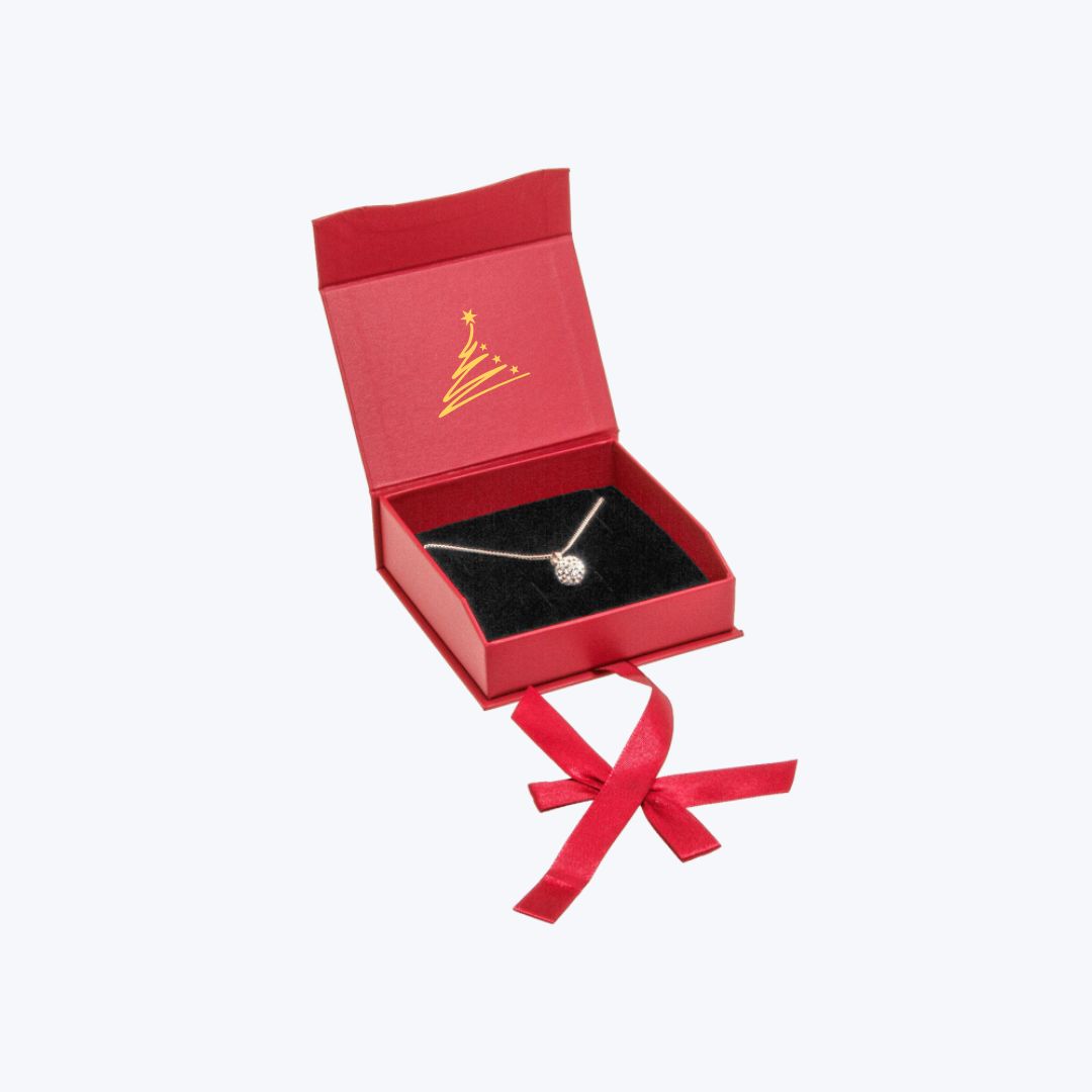 Auf Wunsch kann die Verpackung mit einem festlichen Weihnachtsmotiv oder Ihrem eigenen Logo bedruckt werden. Ideal für Juweliere, die zu Weihnachten auf dezente Eleganz setzen.